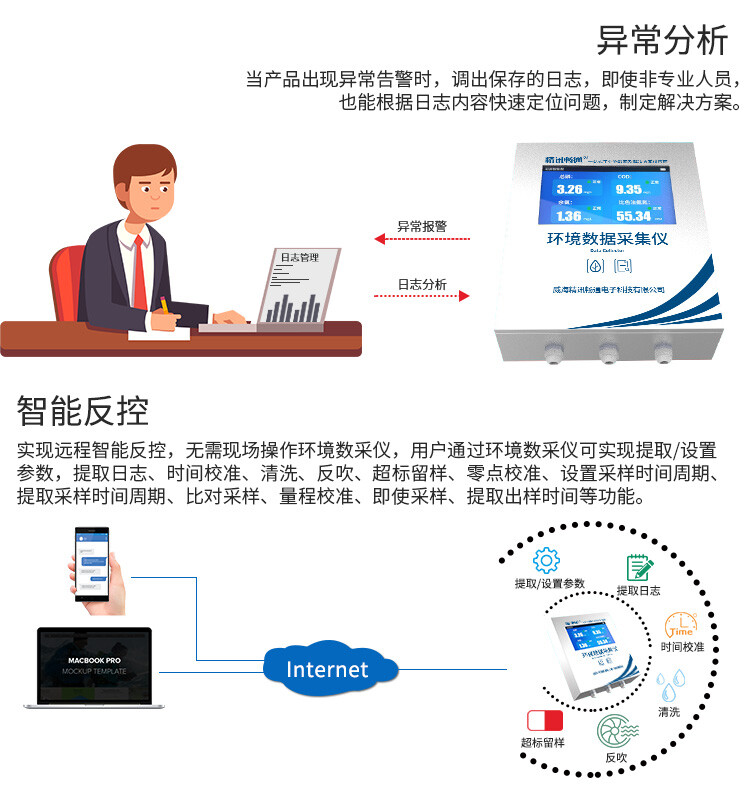 1、定時數據采集、本地存儲及上報平臺 ; 2、整點上報污染源實時數據、分鐘數據、小時數據、日數據 支持本地導出歷史數據 ; 3、支持斷電續傳功能:自動和手動補傳數據 大容量數據存儲空間:提供32MB的內部Flash和外部TF卡數據存儲空間,可存儲10 年以上的采集數據 ; 4、WDT 看門狗設計,保證系統穩定,采用完備的防掉線機制,保證數據終端永遠在線 ; 5、內置市場常見的各種環保儀器儀表和在線監測儀通信協議,用戶通過簡單配置即可正常使用 ; 6、支持串口、APP 等多種配置方式 ; 7、 遠程管理功能:支持遠程參數配置(同時支持平臺配置方式和短信配置方式)、遠程程序升級 提供功能強大的中心管理軟件,方便設備管理(可選)。