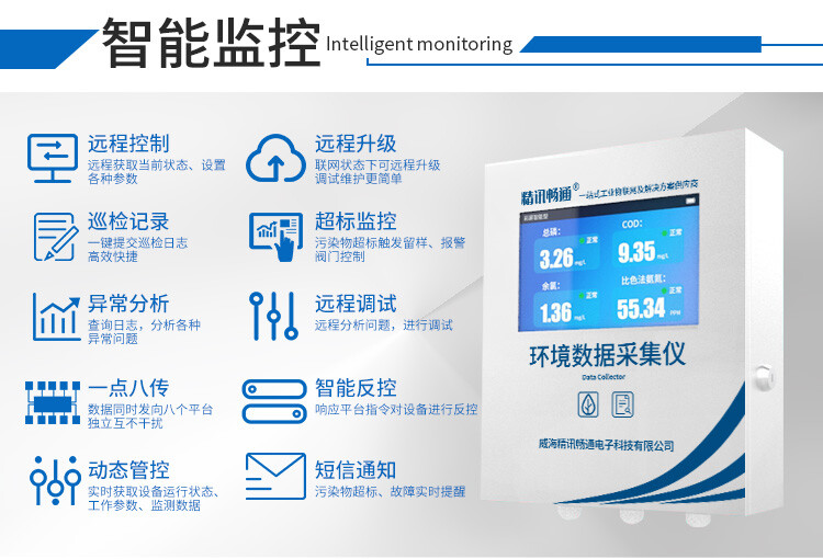 環保數采儀JXBS-3001-SCY是新型生態環境監測、污染源監控專用數據采集器,按照工業級標準設計,針對生態環境監測的各種要求做了專門的優化,支持有線以太網、無線 2G/3G/4G(全網通)等,滿足不同現場環境下對遠程通信的要求。 環保數采儀JXBS-3001-SCY采用高性能的工業級硬件,一體化設計,支持外接組態屏, 從硬件上保證了系統的穩定性和可靠性。配備豐富的采集控制接口,有 RS232、RS485、以太網、模擬量輸入、開關量輸入、開關量輸出和繼電器接口,實現生態環境監測、污染源監控等數據的采集、存儲、顯示、控制、報警及傳輸等綜合功能。