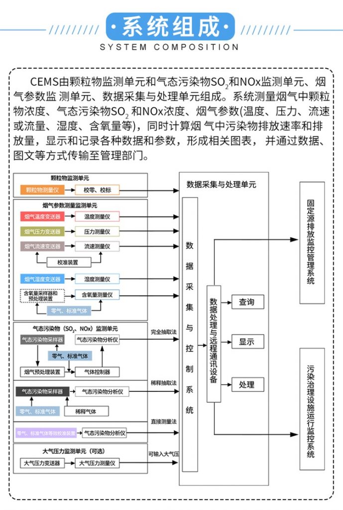 精訊暢通的CEMS煙氣排放連續監測系統由顆粒物監測單元和氣態污染物SO和NOx監測單元、煙氣參數監測單元、數據采集與處理單元組成。煙氣分析儀能夠測量煙氣中顆粒物濃度、氣態污染物SO2和NOx濃度、煙氣參數,同時計算煙氣中污染物排放速率和排放量。CEMS煙氣在線監測系統可以顯示和記錄各種數據和參數,形成相關圖表,并通過數據、圖文等方式傳輸至相關管理部門。