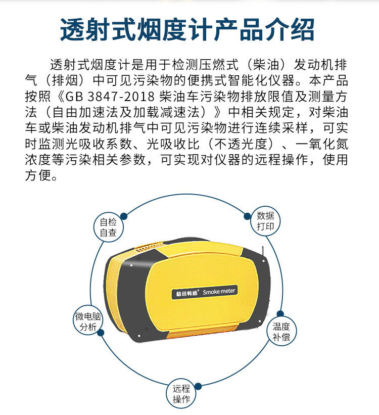 透射式煙度計可以廣泛應用于環境保護部門、機動車檢測站、發動機制造廠、汽車制造廠、汽車修理廠等單位。