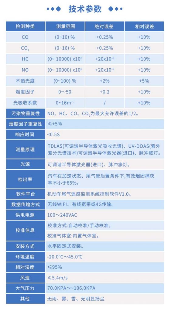 檢出率:汽車在加速狀態、尾氣管后置條件下,有效煙團捕獲率不小于85%。