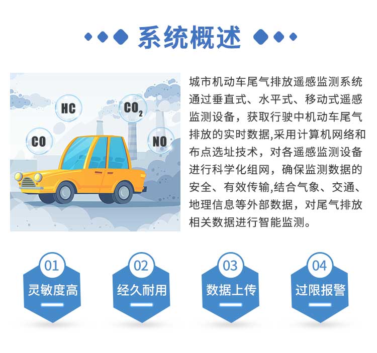 機動車尾氣遙感監測系統是可以實時監測行駛中機動車尾氣排放數據的空氣質量檢測系統。機動車尾氣遙感監測系統通過垂直式、水平式、移動式遙感監測設備來監測尾氣排放。采用計算機網絡和布點選址技術,對各遙感監測設備進行科學化組網,確保監測數據的安全、有效傳輸。