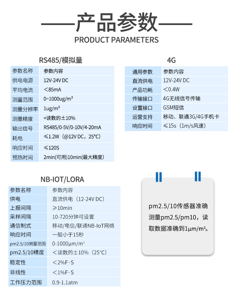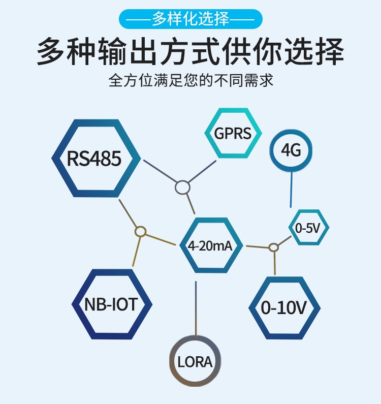 1、顆粒物傳感器輸出信號多樣,支持RS485/4-20mA05V/0-10V/NB-LOT/LoRa/4G等多種信號輸出,滿足不用環(huán)境需求。