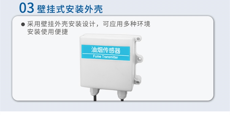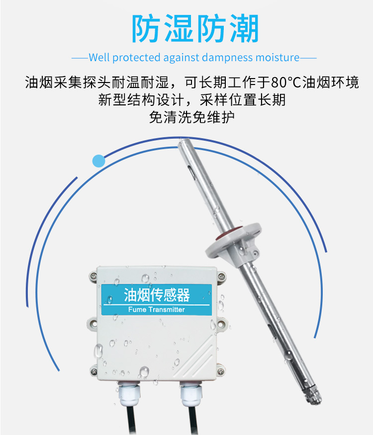 4、防濕防潮:油煙傳感器采集探頭耐溫耐濕,可長(zhǎng)期工作于80℃油煙環(huán)境,新型結(jié)構(gòu)設(shè)計(jì),采樣位置長(zhǎng)期免清洗免維護(hù);