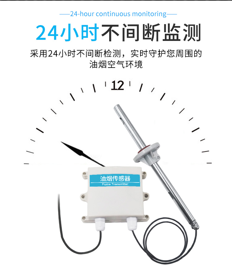 2、24小時(shí)不間斷監(jiān)測(cè):油煙傳感器采用24小時(shí)不間斷檢測(cè),實(shí)時(shí)守護(hù)您周?chē)挠蜔熆諝猸h(huán)境;