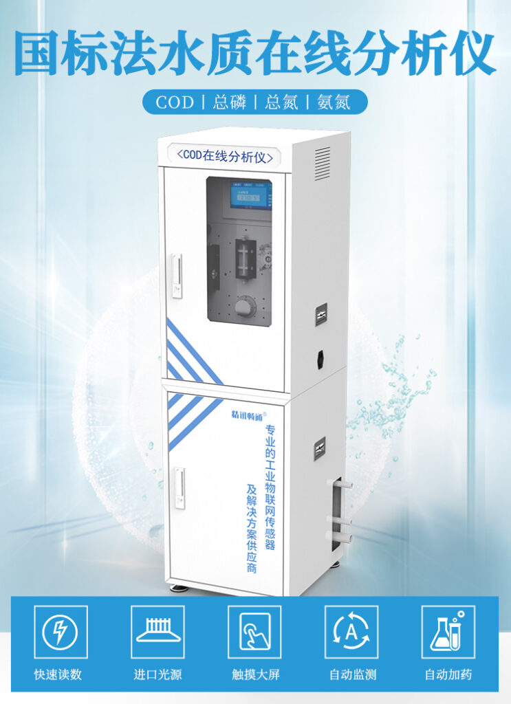 國標法水質在線分析儀是一款以分光光度法為測量原理的水質在線分析儀,監測COD,氨氮,總磷,總氮,濁度,重金屬,高錳酸鹽,色度,硬度等參數,自動化程度高,試劑消耗低,可廣泛應用于水環境自動監測站、自來水廠、地區水界點、水質分析室、排放廢水和污水的水質六價鉻含量監測以及各級環境監管機構對水環境的監測。
