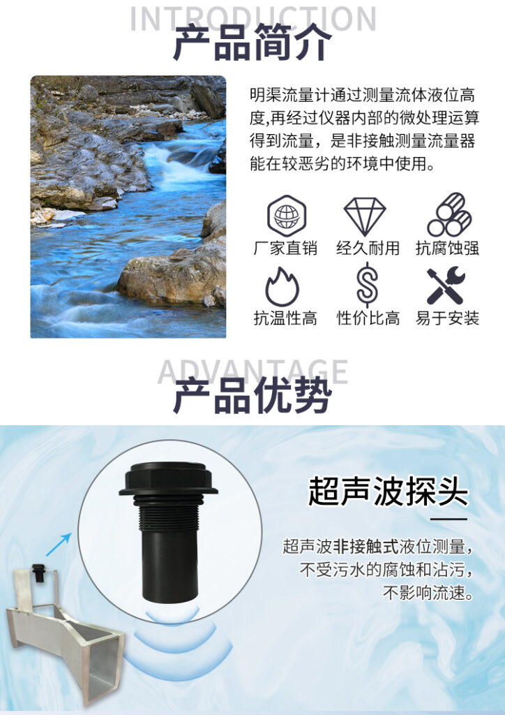 1、超聲波探頭:超聲波非接觸式液位測(cè)量不受污水的腐蝕和沾污,不影響流速。