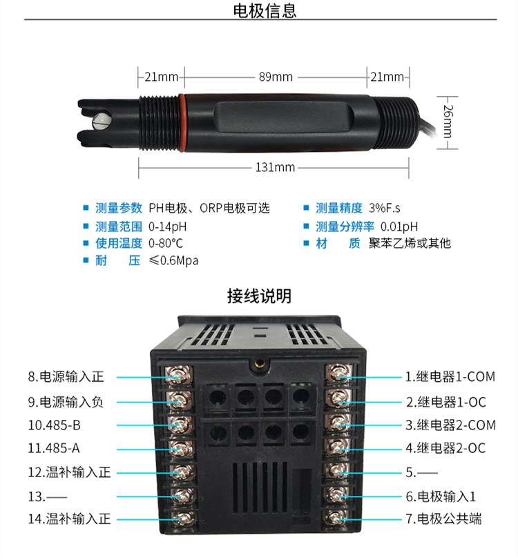 2、數據存儲:儀器內置的存儲芯片,可以保存過去三天的歷史數據。方便用戶查找;沖洗繼電器∶儀器設置了沖洗繼電器,可以通過安裝電磁閥定時清洗PH電極;