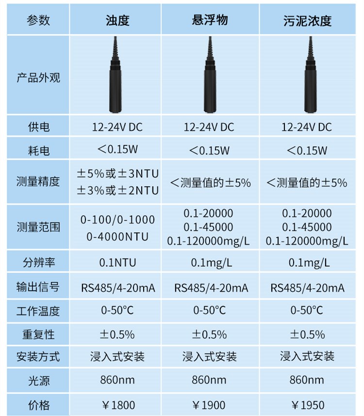 | 測(cè)量范圍 | 0-100/0-1000 0-4000NTU | 0.1-20000 0.1-45000 0.1-120000mg/L | 0.1-20000 0.1-45000 0.1-120000mg/L |